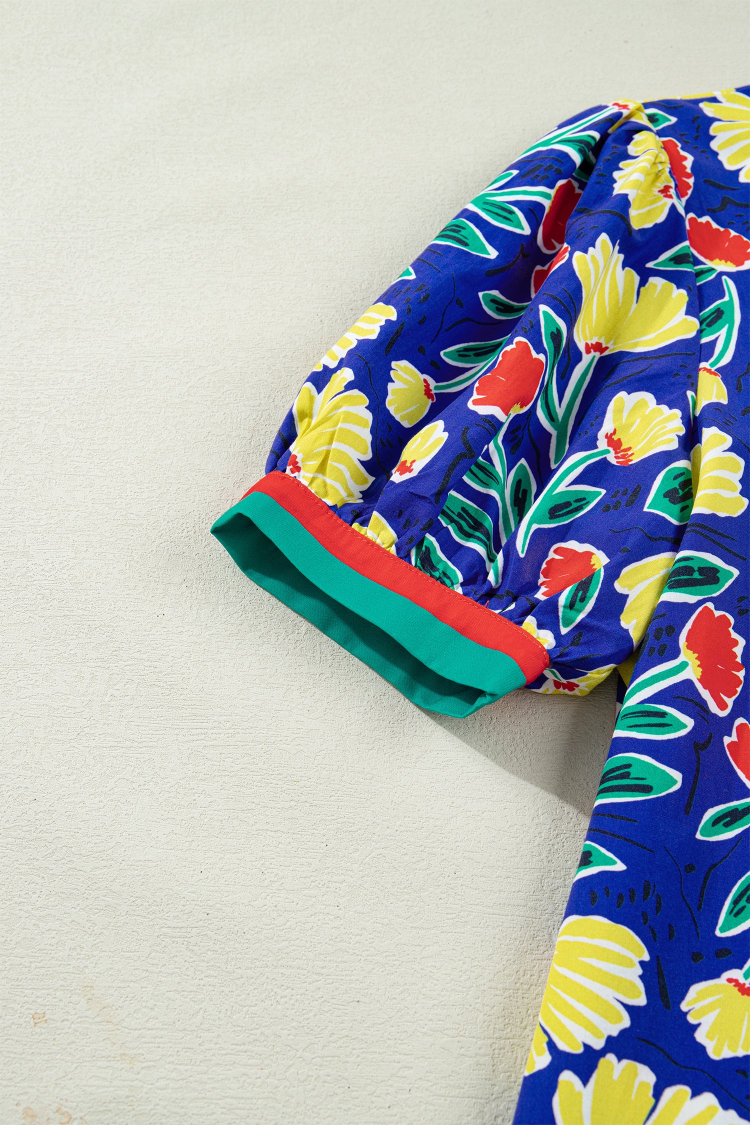The contrast striped patchwork adds chic detail to this flower blouse.
